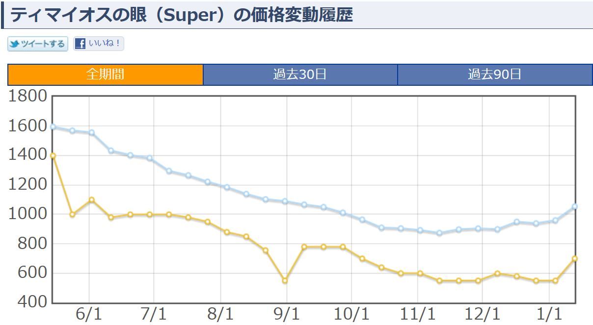 あとは恐らくその影響でティマイオスの眼、呪符竜もほんの少しですが値上がりしてますね
