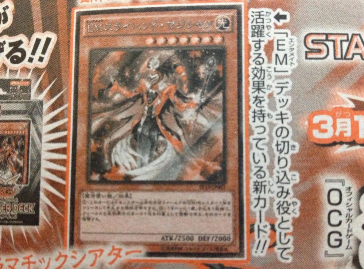 ①:このカードはPモンスター以外の自分フィールドの「EM」モンスター1体をリリースして手札から特殊召喚できる。