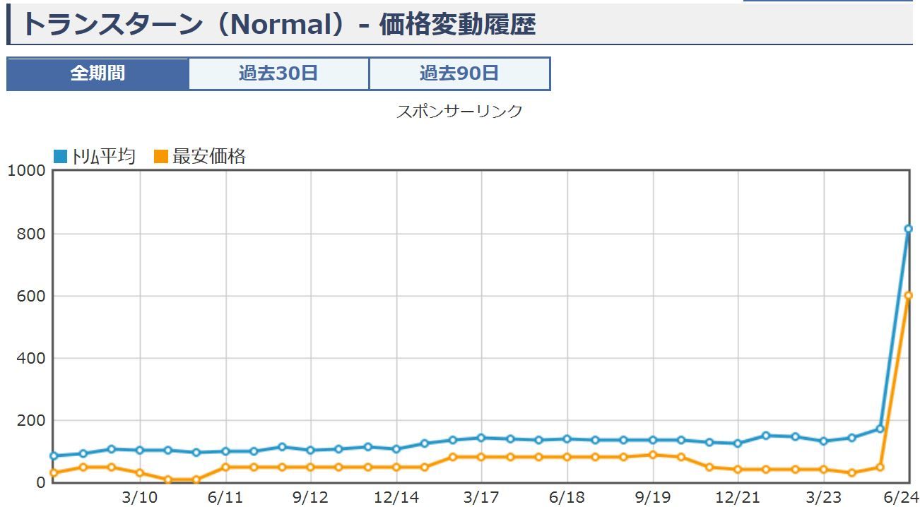 トランスターンが値上がりしてるとコメントをいただいたので調べてみました!