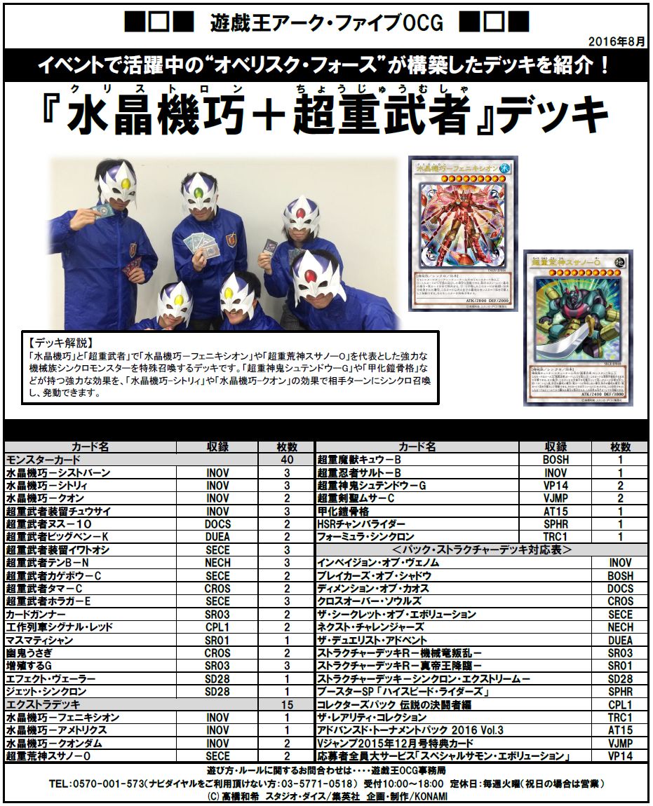 【デッキレシピ紹介!】遊戯王OCGイベントを盛り上げてくれているオベリスク・フォース(遊戯王OCGインストラクター)のみんなが考えてくれたデッキレシピを紹介!こちらは『水晶機巧 + 超重武者』デッキだ! pic.twitter.com/qse1vk6IGm