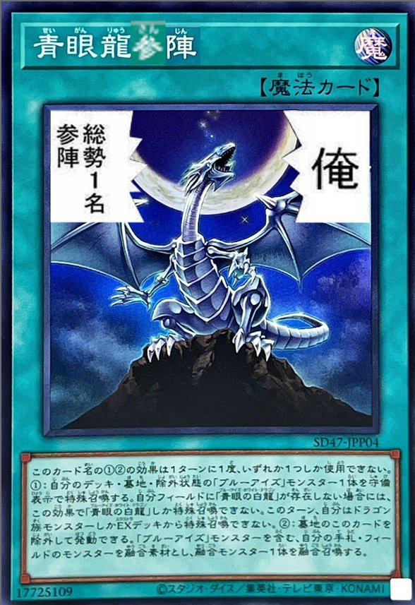 青眼龍轟臨、轟臨とかいう大層なワード使っときながら出てくる青眼が守備なのがなんか腹立つ。