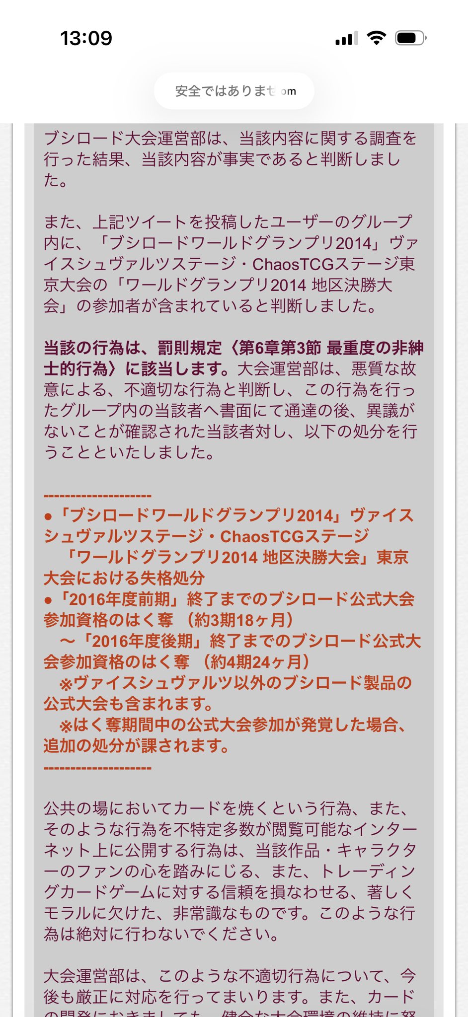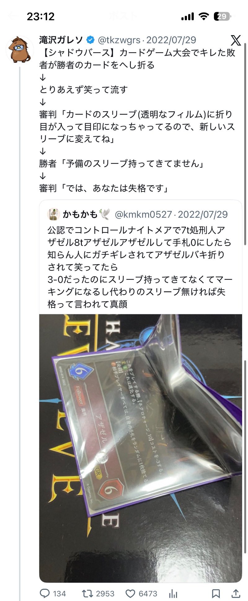 ▽>負けたのでイライラして相手のカードを折ったら、『折った側』と纏めて『折られた側』もトーナメント敗退になった事件