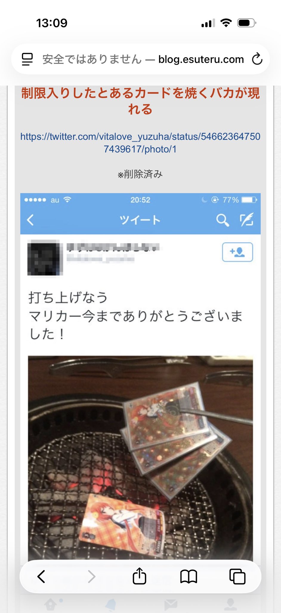 ▽地区大会後の打ち上げ(焼肉)でカードを焼く
